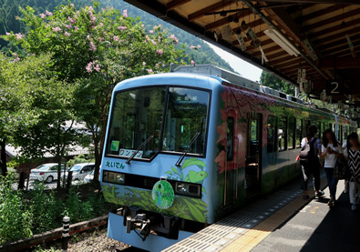 叡山電車を三陸鉄道カラーにラッピング。オリジナルヘッドマークを